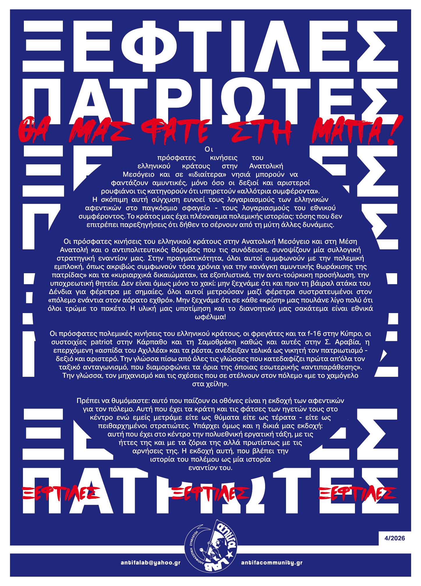 ΑΝΤΙΜΙΛΙΤΕΡ ΕΝΤΥΠΟ ΔΡΟΜΟΥ (ΑΝΟΙΞΗ 2026) | ANTIFA LAB