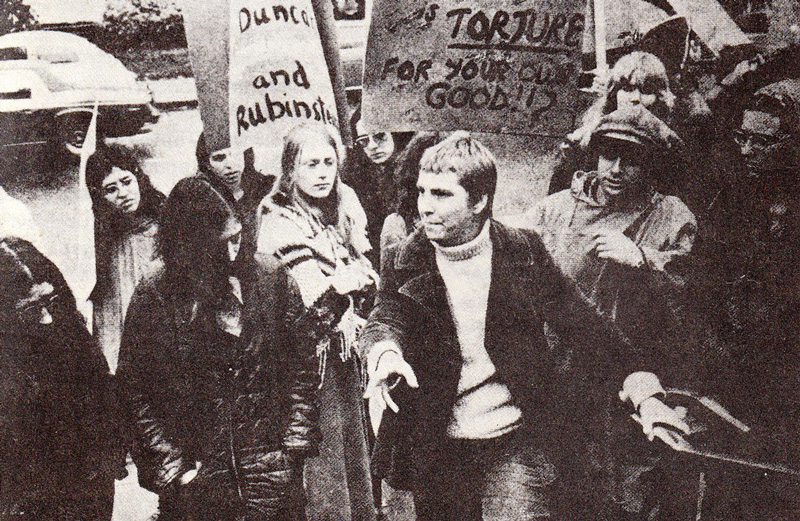 (η φωτογραφία από διαδήλωση του Network Against Psychiatric Assault στην καλιφόρνια, το 1975) “… Η αναπληρώτρια διοικήτρια του ΨΝΑ, Αφροδίτη Χονδρονικόλα, εξηγεί ότι πρόκειται να κατασκευαστεί ένας μονόκλινος θάλαμος αυξημένης φροντίδας (γνωστός και ως “ήσυχο δωμάτιο”) σε εννέα τμήματα οξέων περιστατικών. Εκεί θα τοποθετούνται οι διεγερτικοί ασθενείς, όταν δεν λειτουργούν οι τεχνικές αποκλιμάκωσης και κρίνονται από τους θεράποντες ψυχιάτρους επικίνδυνοι για τον εαυτό τους και τους άλλους. “Το κόστος για το καθένα από αυτά τα δωμάτια υπολογίζουμε ότι δεν θα ξεπεράσει τα 1.000 ευρώ. Εχουμε ζητήσει άδεια από την αρχή προστασίας προσωπικών δεδομένων για τοποθέτηση κάμερας και έχουμε πάρει προσφορές από δύο εταιρείες”, λέει η κ. Χονδρονικόλα. … Ο Βλάσης Τομαράς, καθηγητής Ψυχιατρικής και πρόεδρος της Ειδικής Επιτροπής Ελέγχου -τα μέλη της οποίας ορίζονται από το υπουργείο Υγείας – λέει στην “Κ” ότι από το 2008 ζητούν τη δημιουργία “ήσυχων δωματίων”. Σε έκθεση που συνέταξε, εξηγεί τις σχετικές προδιαγραφές. “Η πόρτα ανοίγει από τους νοσηλευτές και μόνο, απουσιάζουν τα μεταλλικά σκεύη, καθρέφτης, κομοδίνο, πριζοδιακόπτες. Το στρώμα και το δάπεδο είναι άκαυστα. Υπάρχει πυρανίχνευση και επιτήρηση με κάμερα”. Μια ακόμη παράμετρος προβλέπει την επένδυση των τοίχων με μαλακά υλικά για να αποφεύγονται οι τραυματισμοί. … Αυτά δημοσιεύονταν, με κάποια “ανθρωπιστική χαρά” σε μια καθεστωτική εφημερίδα, στις αρχές Σεπτέμβρη του 2015. Εξηγήσιμη η χαρά: το κάτεργο του Δαφνιού δεν έκλεισε, όπως θα έπρεπε. Αντίθετα. Ανακαινίζεται, και φυσικά προς το χειρότερο. Ανακαινίζεται ο (ψυχιατρικός) εγκλεισμός παίζοντας ακόμα και με τις λέξεις. Γιατί όχι; Τι είναι το “ήσυχο δωμάτιο”; Όχι ένα δωμάτιο για να διαβάσεις ή να ακούσεις μουσική… Είναι θάλαμος απομόνωσης... Ακόμα και ηχητικής… Θάλαμος απομόνωσης όπου “αν χρειάζεται” ο έγκλειστος θα μένει και δεμένος… Ένα τέτοιο είδος απομόνωσης, από μόνο του, είναι βασανιστήριο… Αλλά δεν πειράζει. Αυτοί είναι “τρελοί” και “επικίνδυνοι”… … Έρχομαι τώρα στα πιο σοβαρά. Υπάρχει ένα πολύ σοβαρό, κεντρικό ζήτημα, στο οποίο έχει απαντήσει εδώ και πάρα πολλά χρόνια η ψυχιατρική, σαν επιστήμη, και η απάντηση είναι αδιαπραγμάτευτη: άσυλα τέλος. Και φτάνουμε στο 2014 για να ξανατεθεί αυτό το ζήτημα στην ελλάδα, και μάλιστα με επιχειρήματα υποτίθεται ανθρωπιστικά. Εάν θα κλείσει, εάν ΠΡΕΠΕΙ να κλείσει, ή όχι, το ψυχιατρείο. Το Δαφνί ας πούμε. Και βγαίνουν διάφοροι συνδικαλιστές, και κόμματα της αριστεράς, και λένε “όχι, να μην κλείσει το ψυχιατρείο”. Ξαναβρίσκονται λοιπόν επιχειρήματα, συνηγορία του ασύλου. Αν αρρώσταινα, εάν αρρώσταινε ένας δικός μου άνθρωπος, δεν θα ήθελα ποτέ να βρεθώ, να βρεθεί, σε μια κατάσταση τέτοια, πίσω από μια κλειδωμένη πόρτα, για μεγάλο χρονικό διάστημα. Θα ήθελα μια θεραπεία κοντά στο σπίτι μου, με τους ανθρώπους μου εμπλεκόμενους, και με προοπτική να ξαναπιάσω την ζωή μου από εκεί που την άφησα όταν μου έτυχε το ψυχιατρικό πρόβλημα… Λοιπόν, έχουν υπάρξει ιστορικά αυτά τα δύο μοντέλα, το ένα του εγκλεισμού, του κλειστού ψυχιατρείου, και το άλλο της ανοικτής και σαφώς πιο κοινωνικής θεραπείας. Από επιστημονική άποψη το ζήτημα έχει κλείσει. Το πρώτο μοντέλο θεωρείται διεθνώς απαράδεκτο. Όμως στην ελλάδα ανακινείται το ζήτημα “να μην κλείσει το άσυλο – το ψυχιατρείο”. Αυτό είναι αντιδραστικό, και επιβιώνει σαν α